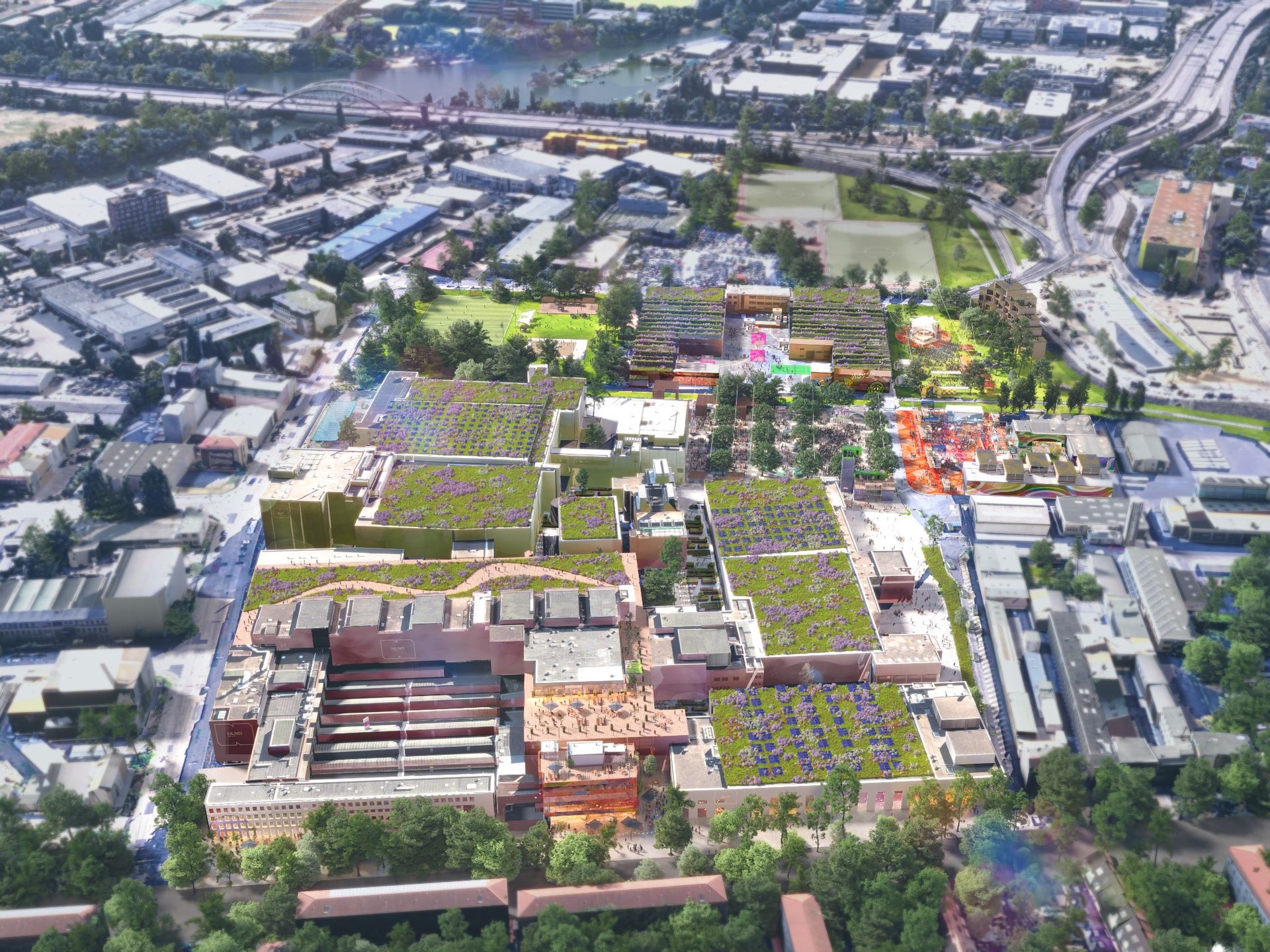 Developed the Usage Concept: Created the master plan to transform a monocultural factory into a dynamic mixed-use district for production, office, and culture.